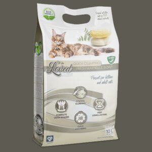 Thus, only the litter clumps are removed, and there is a lot easier to remove them. Bentonite To Be Loved® litter, therefore, saves a non-negligible amount of unclean bedding as the unsoiled pellets remain in the litter box or toilet and add a small amount of litter little by little to make the complement.